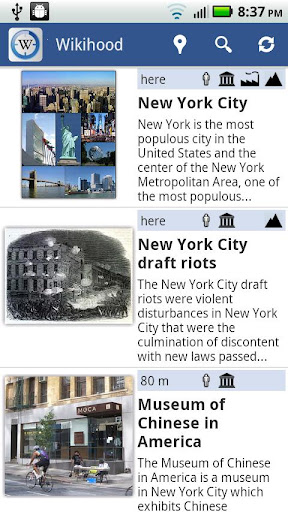 You not only get access to all the locations around you, but also the vast information related to these locations categorized by "persons" and "culture".